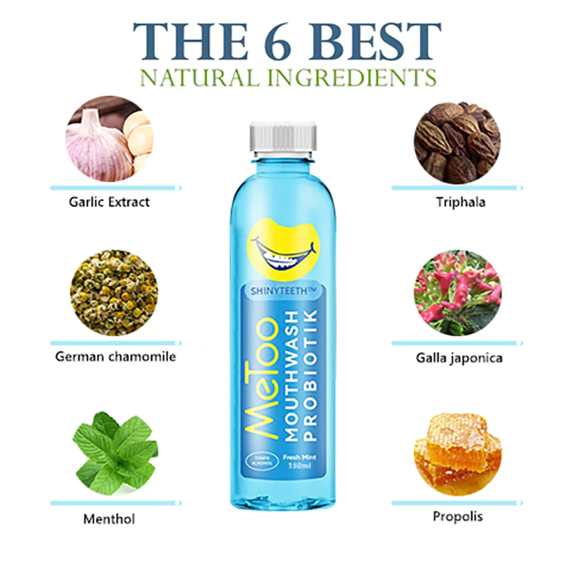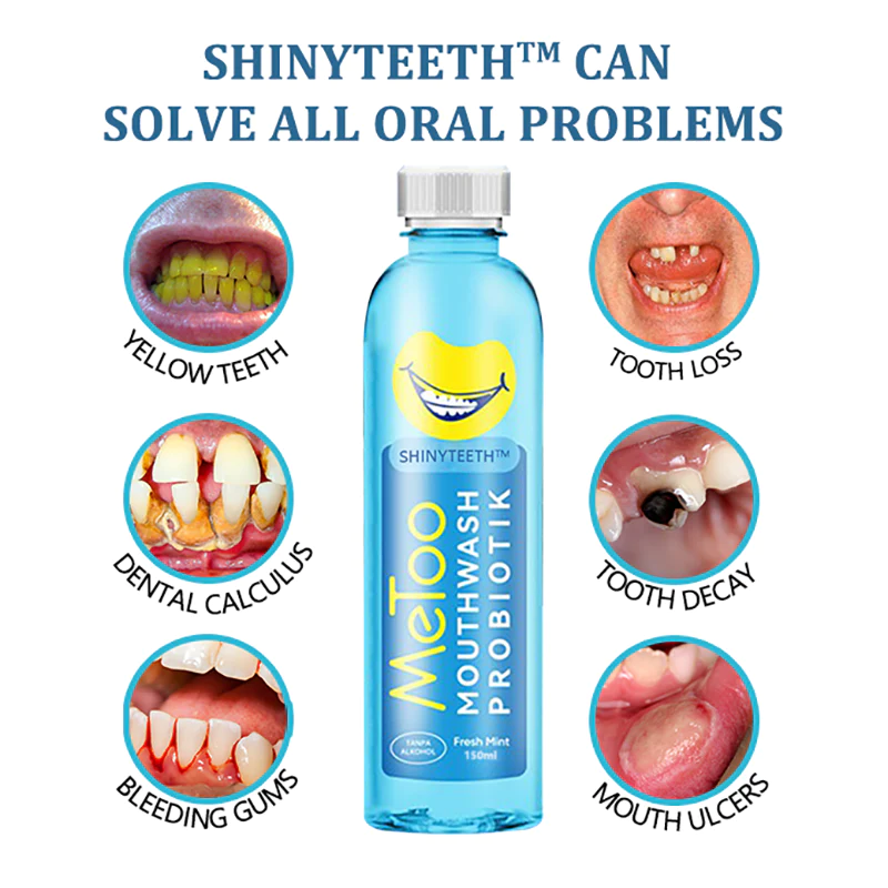 Shinyteeth™ Mouthwash is the latest product certified by the American Dental Association and recommended by dentists. It can perfectly solve all oral problems, including dental calculus, bad breath, oral ulcers, dental caries, bleeding gums, tooth sensitivity, gingivitis, loose teeth, periodontitis, swollen gums, tooth damage, tooth loss, etc. No side effects. Made from 100% natural herbs. Suitable for everyone, including children, young people, and the elderly.