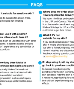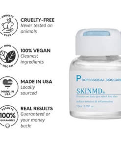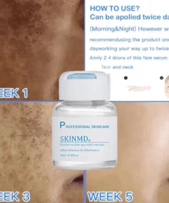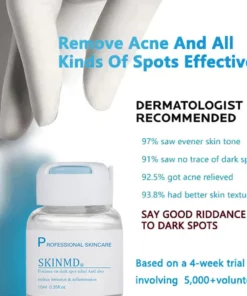 “SKINDM® Dark Spot And Acne Treatment Liquid is the product delivering the safest and fastest results of eliminating dark spots and acne outside of plastic surgery like laser treatment. We have found that it has helped 95% of users to successfully eliminate dark spots and acne through long-term follow-up records. It works to inhibit the formation of melanin and bacterial growth, and fade already-formed spots and acne scarring. You only need to use this lotion to give your skin overall protection and improvement, SKINDM® is very safe to use on all skin types and all areas (ophthalmologist-tested safety when used around the eyes)!“