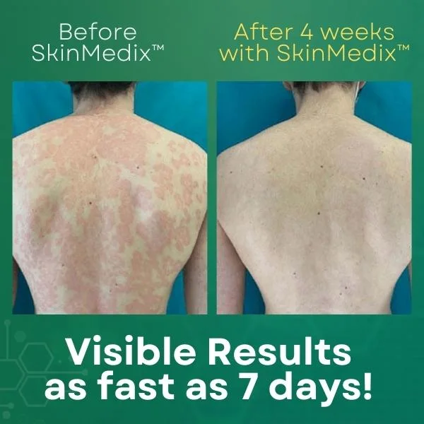 SkinMedix™ Psoriasis Cream improves the skin by decreasing inflammation and clearing scales. This slows the production of skin cells and reduces itching. It has a positive impact on an individual’s skin and mental well-being.