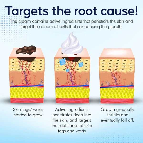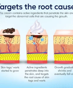 SkinPro™ Warts & Tags Remover Cream works by targeting the root of the problem: the cells that make up the wart or skin tag. The cream contains active ingredients that penetrate the skin and target the abnormal cells that are causing the growth.
