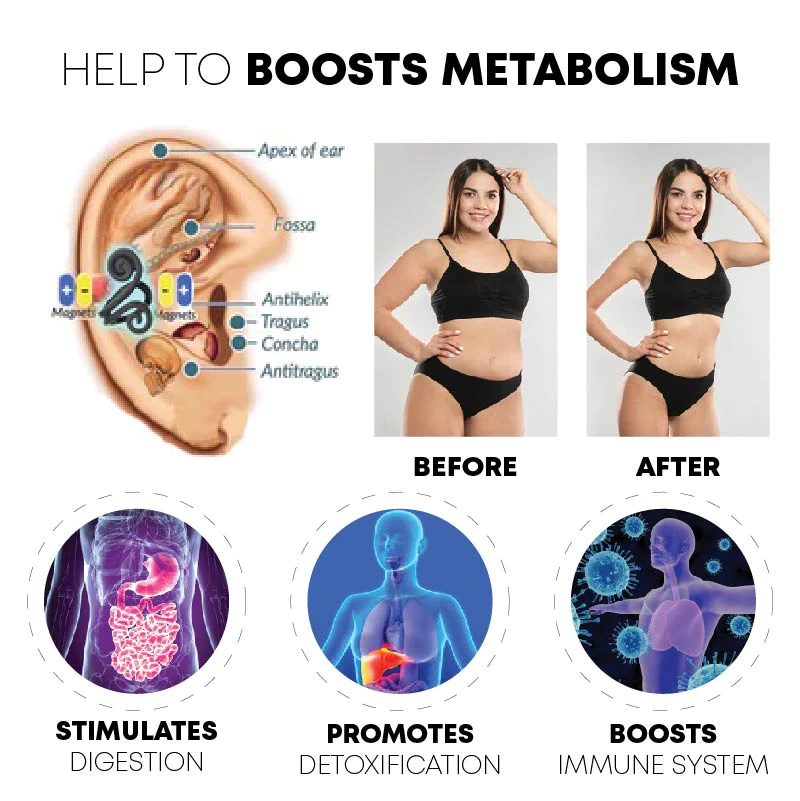 Enjoy a boost of body detoxification and natural weight loss. The SLIMAZ MagneION Earrings have been specifically designed to support metabolic boost, and help balance the digestive tract, so you can maintain your weight while also improving overall health.