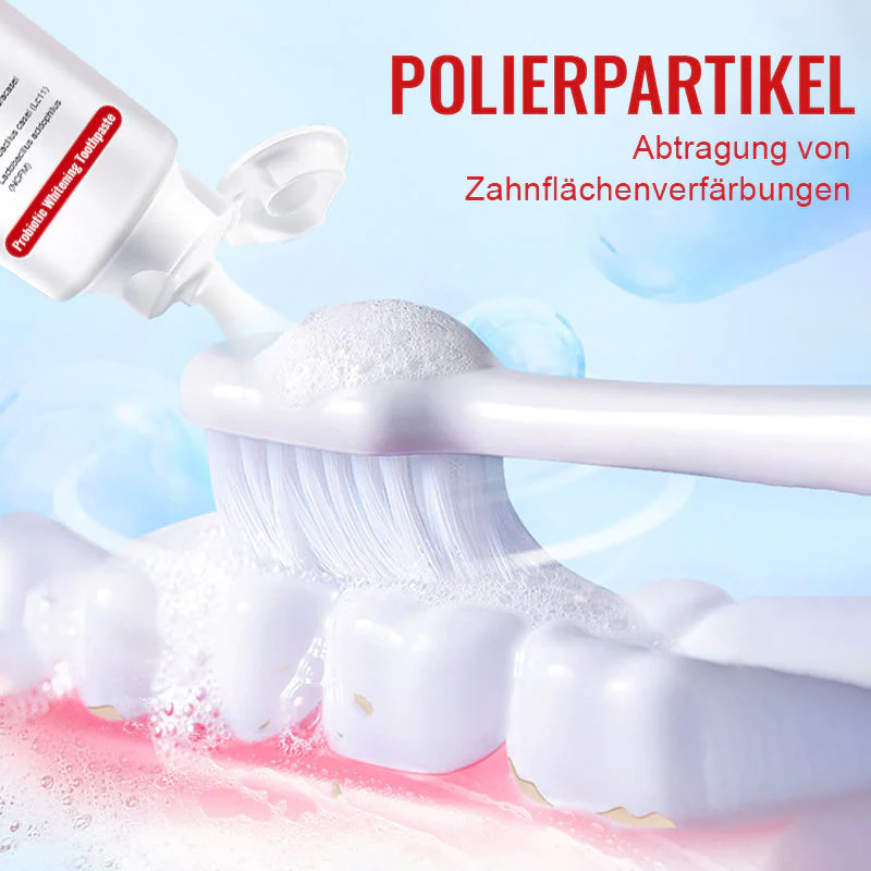 REICH AN VIELEN PROBIOTIKA: Diese Zahnpasta enthält Probiotika wie Lactobacillus HN019, Lactobacillus paracasei LPC37, Lactobacillus cereus LC11 und Lactobacillus phagocytophilus NCFM, um Zahnfleischbeschwerden zu lindern, den Zahnschmelz zu erhalten und den Atem frisch zu halten.