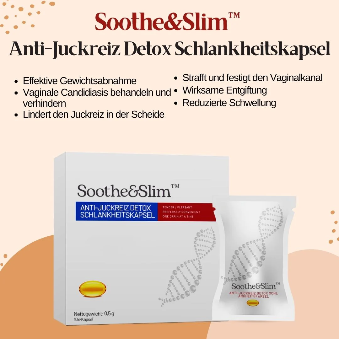 Soothe&Slim™ Anti-Juckreiz Detox Schlankheitskapsel, entwickelt von Dr. Shelby Wiggintons Forschungsteam, rekonstruiert auf kreative Weise Kollagen und kombiniert verschiedene Pflanzenextrakte, um die Gebärmutter und die Vaginalschleimhaut effektiv zu reparieren, die Selbstreinigungs- und Befeuchtungsfähigkeit des Systems zu fördern, die Regeneration des Vaginalgewebes zu stimulieren und schließlich die vaginale Gesundheit sowie die Festigkeit und Geschmeidigkeit innerhalb von 4 Wochen wiederherzustellen.