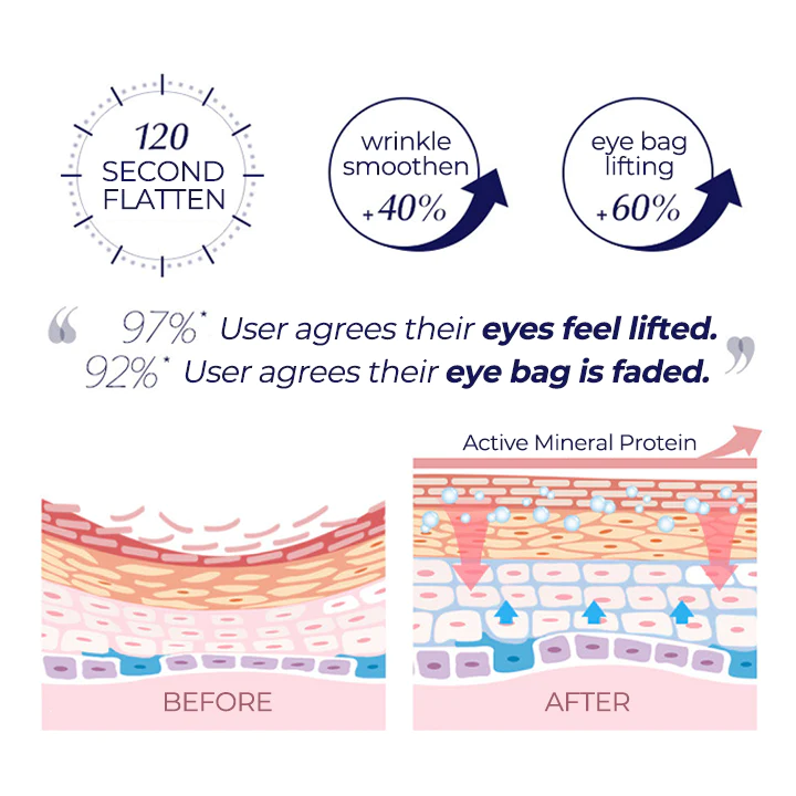 Its mild, non-irritating bio-scientific formula smoothly glides onto under eyes and lids and instantly reduces fluid buildup around the eyes that produces bags, delivering a depuffing effect that lasts 6 to 8 hours. Its soft, light texture absorbs quickly, penetrates and activates eye-area muscles, and constricts the blood vessels to rapidly freshen up your eyes and smooth the eye bags.