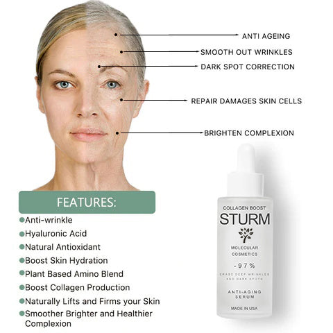 STURM® Luxury Collagen Boost Anti-Aging Serum is Considered to be the most effective anti-aging product in 2022 and it’s highly recommended by Dr. Monica.