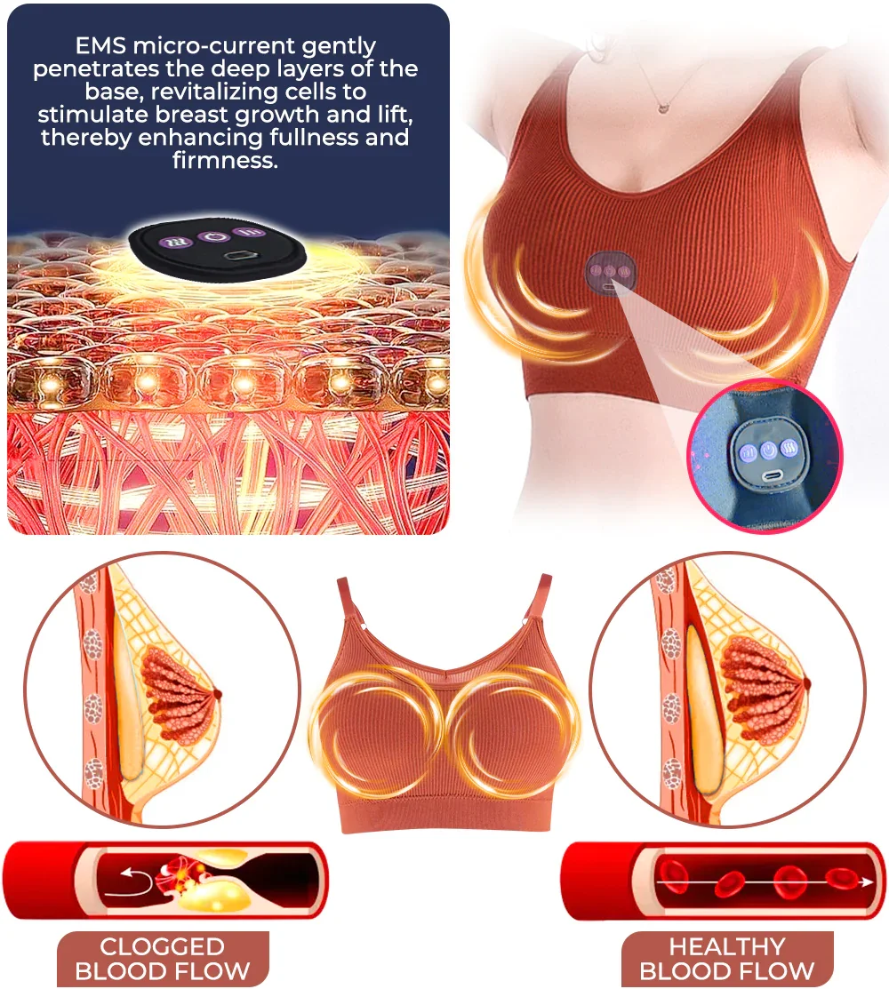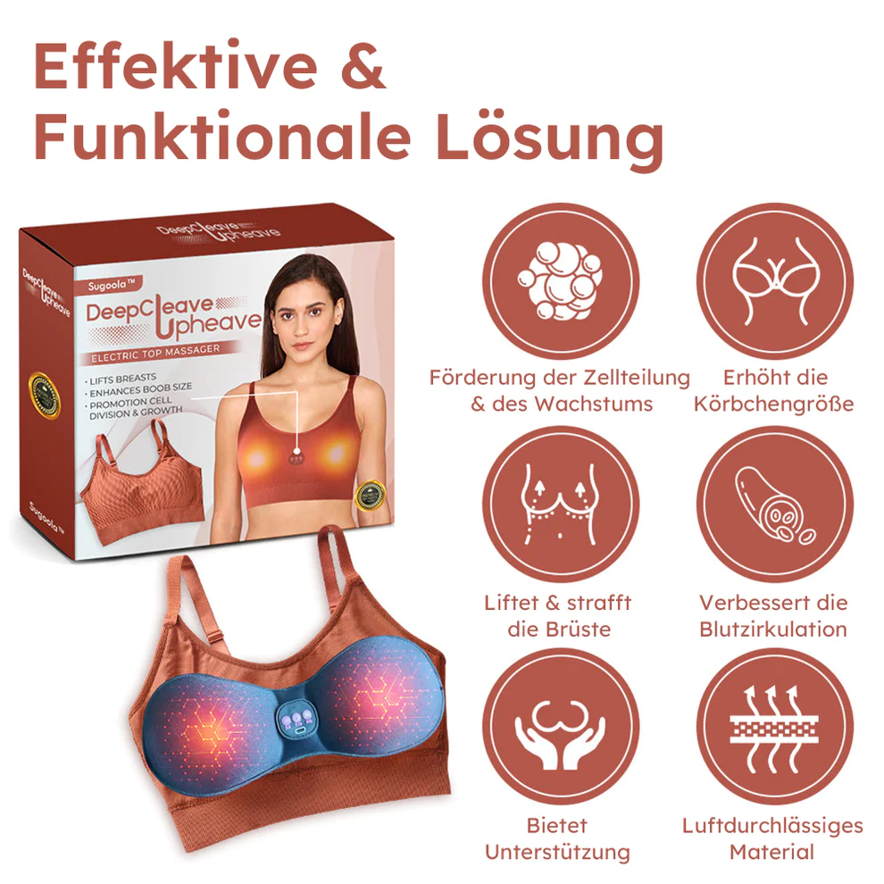 Der Sugoola™ DeepCleave Upheave Electric Top Massager nutzt die EMS-Mikrostromtechnologie, um die Durchblutung in den Brüsten zu steigern, was das Wachstum und die Straffung unterstützt.