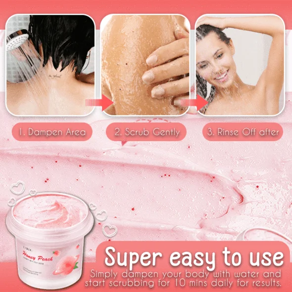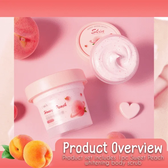 OurSweet Peachy Whitening Body Scrub is anall-naturalbody careessential contributes tocleaner, healthier, softer and firmerskin with every wash! Itbuffs away dead skin cells, leaving your skinsupremely smoothwithextra whiteningeffect. Itscreamy textureandfresh peachy fragranceadds a touch of luxury to your exfoliating routine.