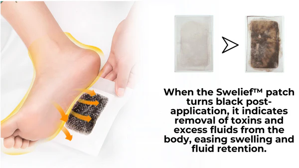 Moreover, The dark spots or residue you may notice on the Swelief™ patch after application are often interpreted as indicators of the toxins and excess fluids drawn out from the body. This phenomenon occurs as a result of the transdermal process facilitated by Swelief™.