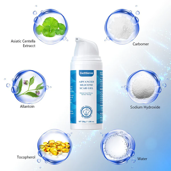 SwiftServe™ Scar Repair Gel – Made with allantoin and advanced scar cream, our formula helps promote skin health, firmness, and elasticity to reduce the appearance of most types of scars, including surgical scars, burn scars, hypertrophic scars, and keloids. The silicone-based scar cream forms a breathable layer to increase the skin hydration, protect the scar tissue, normalize the collagen synthesis and balance the skin growth procedure,which can make your skin look smooth and even!