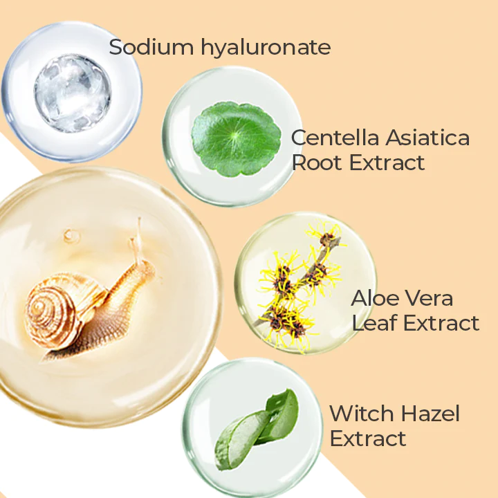 - Contains 80% snail slime, which is naturally composed of collagen, elastin, peptides, glycolic acid, and antioxidants that reverse skin aging and fight against skin imperfections