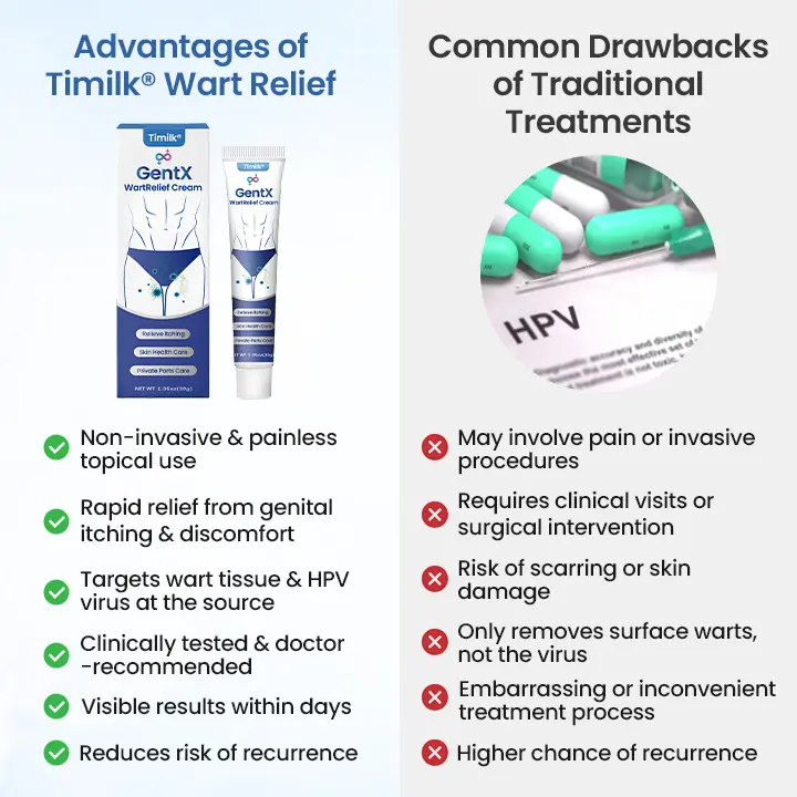 “I had cryotherapy twice for genital warts—both times were painful, and the warts just came back. When I saw Timilk® GentX WartRelief Cream, I ordered it right away. After two days, the warts started softening, and by the seventh day, they were completely gone. No pain, no burning—just real results. It’s been over a month now, and they haven’t come back.”— Ben Wembley