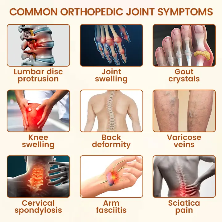 According to statistics, 35% of the global population suffers from joint problems, with one in five people experiencing symptoms of varying degrees of severity. Mild cases include conditions such as arthritis, rheumatoid diseases, and gout, with symptoms including pain, stiffness, swelling, difficulty moving, fatigue, and reduced range of motion.