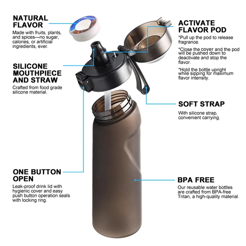 【SEASONING BY ODOR】80% of the flavors you experience are odors, not flavors. Activating the seasoning pods on an inflatable water bottle can stimulate your brain, making it think you are drinking water infused with fruit instead of mineral water.