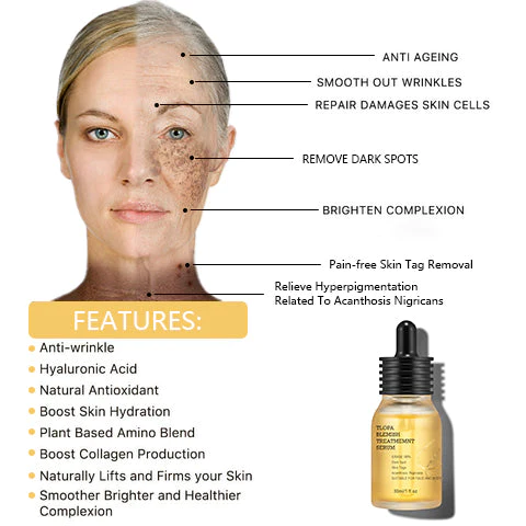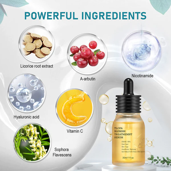TLOPA Blemish Treatment serum has a Moisturizing and Whitening Formula That Helps Your Skin to Be Hydrated, Fairly Radiant and Healthy. It also helps you fight against dark spots, hyperpigmentation, melasma, sun spots, liver spots, freckles, and more, helping to even out and brighten your complexion, brightening dull areas while fading blemishes, scars, and fine lines.