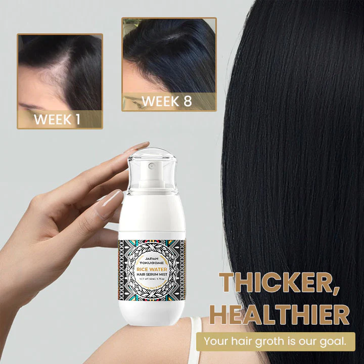 I was skeptical because I’ve tried a lot of hair growth products. My hair has been thinning in the front for over a year now— making me very self conscious. So I bought this TOKUGOME Japan Rice Water Hair Serum Mist. I noticed a difference in the density of my hair after 2 weeks of use. I’ve been using it every night for a week, and even my hair dresser noticed a difference when I went to get my haircut the other night. I also like that it’s lightweight and smells nice, so I can use it every day without having to wash my hair everyday. Some of the other products I’ve tried were too oily for everyday use.