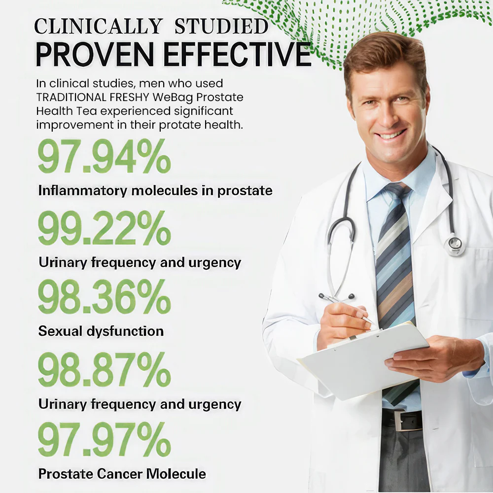 Regain control and confidence! TRADITIONAL FRESHY Prostate Support Tea strengthen your prostate and bladder, eliminating sexual dysfunction and embarrassing urine leakage. We have carefully selected 100% natural ingredients to harness the power of nature to free those in trouble to perform activities without worry.
