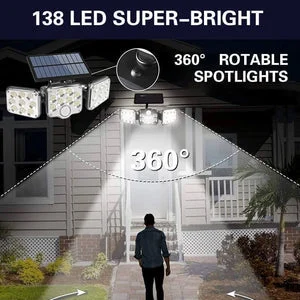 This outdoor solar wall light has 3 heads with 122/138 LEDS that can be rotated 360° to provide good light coverage and you can easily point the heads in the direction you want.