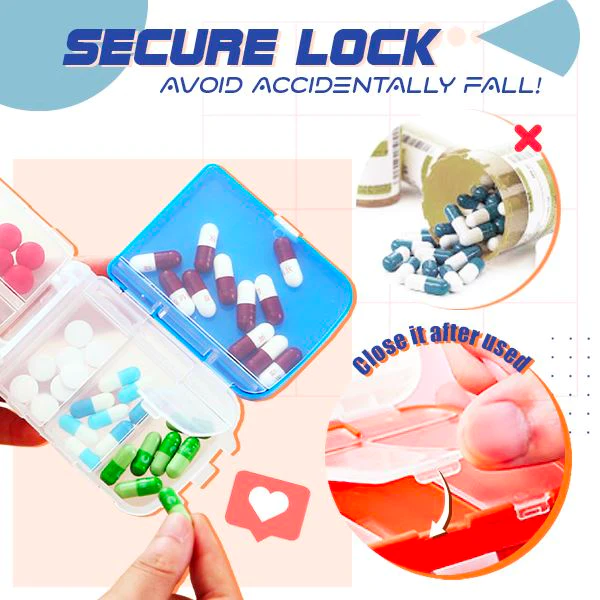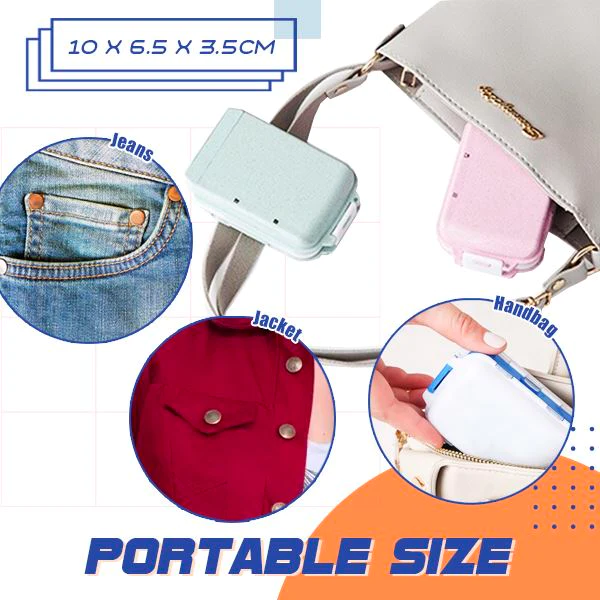 This portable mini medicine kit can be packed in any tight compartment. Designed to fit easily into pockets, purses and bags while carrying all of your daily pills! Perfect for travelling or everyday use, so you can intake your daily medicines anytime, anywhere!