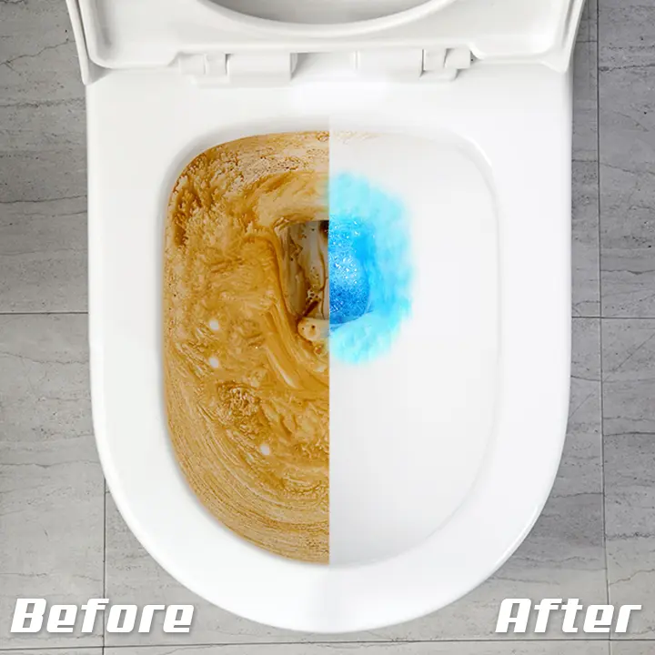 Simply put the cleaner into toilet bowl or water tank. It automatically turns your toilet flushing water into bacteria-killing solution with fresh scent. No more dirty and smelly toilet!