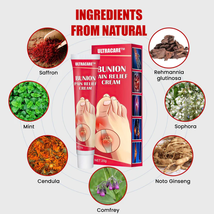 Ultracare™ Bunion Cream offers instant soothing relief, reducing inflammation and providing a refreshing sensation for your tired feet. Our premium formula nourishes your skin, leaving it soft and rejuvenated.