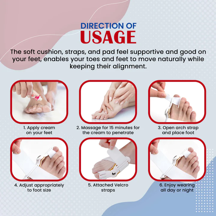 Our innovative set combines the power of advanced bunion cream with a comfortable toe corrector, providing a comprehensive approach to bunion relief. Say goodbye to the throbbing discomfort and hello to comfortable, aligned toes.