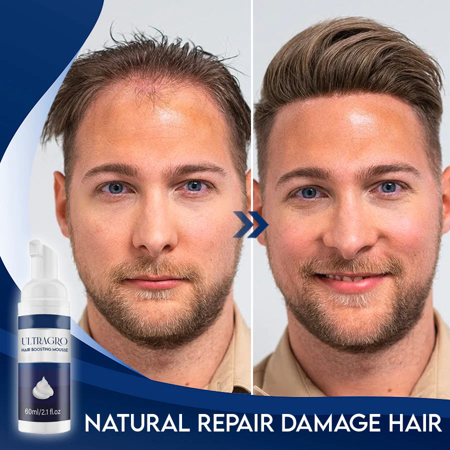 According to the American Academy of Dermatologists, it’s abnormal to lose 100+ strands of hair per day. Abnormal or temporary hair loss can be due to many causes, including nutritional deficiencies, health conditions, medicines, reactions to hair products, stress, or pregnancy. UltraGRO Hair Boosting Mousse is the solution to all. Deep cleanse, nourish your scalp and hair in one bottle. Bring your hair back to life in no time!