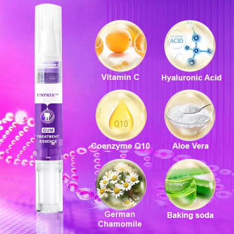UNPREE™ Gum Treatment Essence delivers a rich array of essential nutrients directly to the gum tissues. These nutrients nourish the cells, providing the building blocks necessary for healthy gum tissue growth and repair. The active ingredients work synergistically to activate key cellular processes involved in collagen synthesis, which is crucial for restoring the strength and elasticity of the gums.