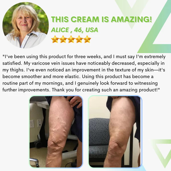 “I had been troubled by my varicose vein issues before. The appearance of them in jeans and shorts left me unsatisfied, and I wasn’t sure if they would improve. However, after using this varicose vein repair cream for three weeks, I can confidently say that my varicose vein problems are now a thing of the past. Even my family members have started using this product, and everyone is extremely pleased! Thank you for providing such an exceptional product!” Anne., 28, charleston West Virginia