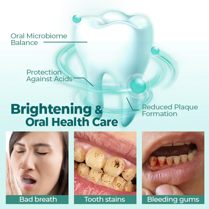 Germ-killing, plaque-removing lactobacillus balances oral flora, keeping your mouth free from harmful bacteria that causes tooth decay, bad breath, and gum diseases.
