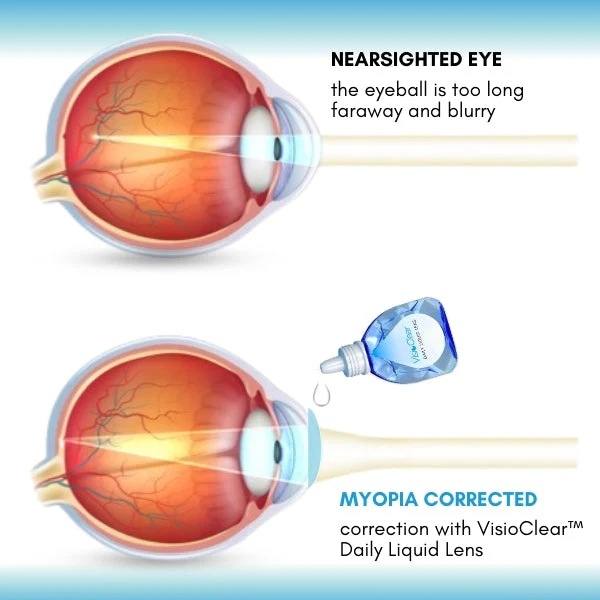 VisioClear™ Daily Liquid Lens operates on an innovative principle where the liquid rapidly adjusts to the natural focal point of the eyes. When 1-2 drops of the liquid are applied, it intelligently interacts with the unique characteristics of the eyes, aligning with specific focal requirements to optimize clarity. This dynamic adaptation rectifies the distortion caused by refractive errors, ensuring precise focusing of light on the retina and providing remarkably clear vision that lasts for a full 24 hours. The liquid lens offers a temporary yet reliable solution for those seeking immediate and hassle-free correction of nearsightedness or farsightedness, reflecting the culmination of scientific advancements in ocular technology.