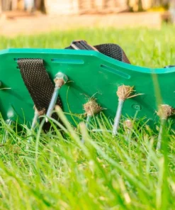 If you plan on aerating your lawn yourself, look for an aerator that has hollow spikes, such as the Yard Butler lawn coring aerator. The hollow spikes will reduce soil compaction and help create a pathway for moisture and fertilizer.