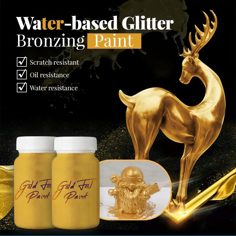 THIS right here? THE BEST bronzing paint available!!! I’ve used it on painted & enameled glass + ceramic pieces & on furniture, have painted doors & woodwork with it; basically it’s an all-purpose very rich gold paint. SUPER awesome for trimming rehabbed furniture pieces!! Has fast dry time and dries matte.