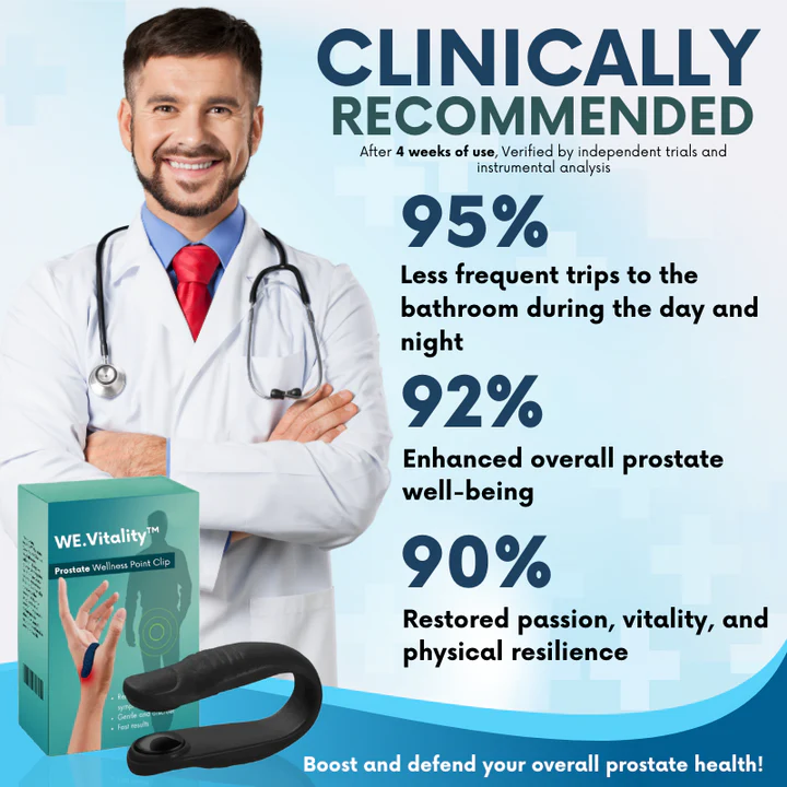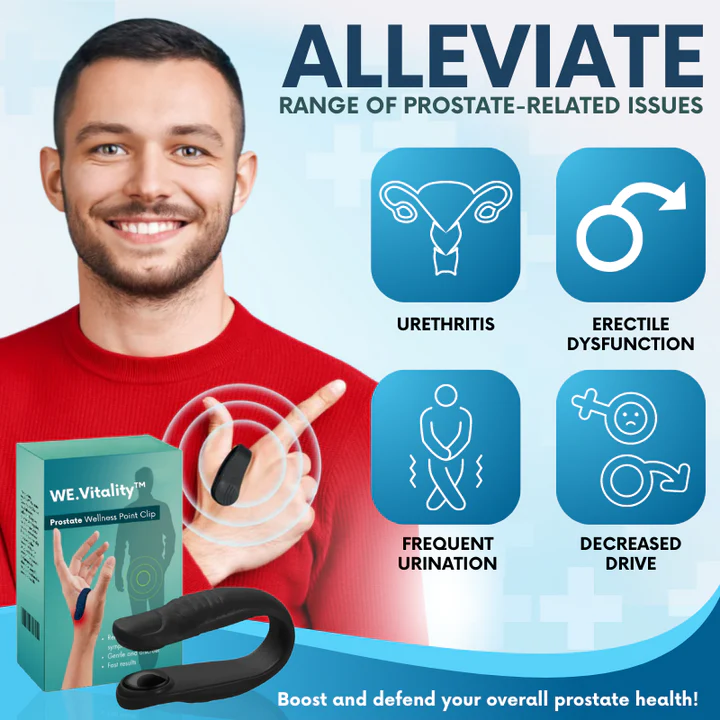 Introducing the groundbreaking WE.Vitality™ Prostate Wellness Point Clip is a cutting-edge solution meticulously crafted to deliver precise relief for symptoms associated with prostate issues. This revolutionary clip harnesses the therapeutic efficacy of thumb acupuncture, an established technique, to gently stimulate designated acupoints directly linked to prostate health.