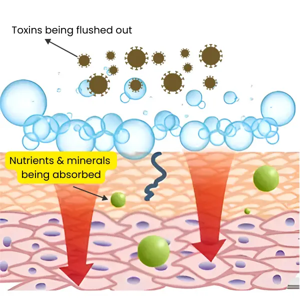 The WellnessHub™ Prostate Care Foot Soak operates by employing a dual-action approach that directly addresses the relationship between toxins and prostate health. Firstly, through the process of osmosis, the foot soak draws out impurities and toxins from the body, including those that may be contributing to prostate inflammation and discomfort. As the feet soak, the pores open up, allowing the expulsion of toxins accumulated within the body.